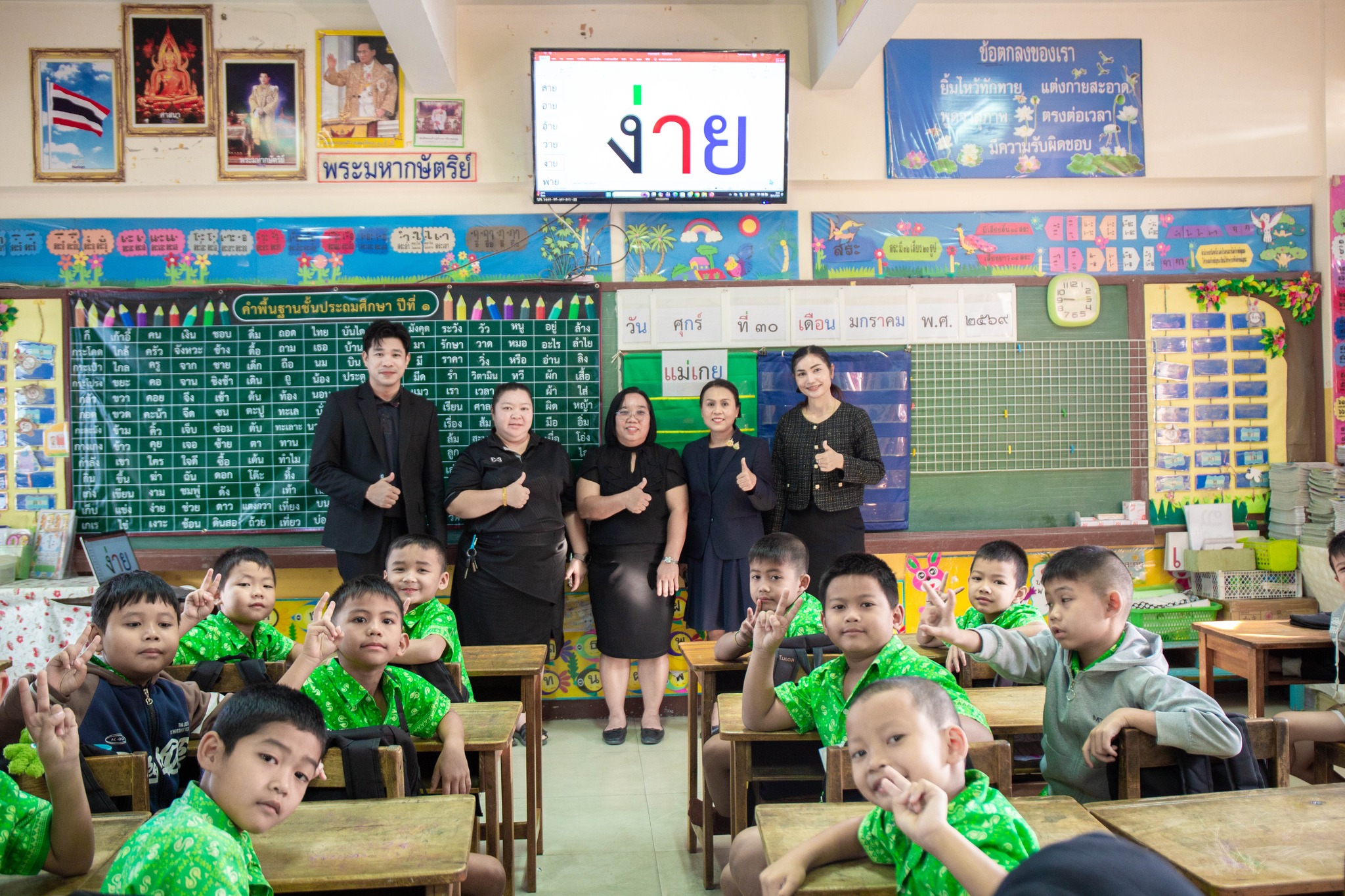 นางชมัยภรณ์ เพชรเทียนชัย ผู้อำนวยการโรงเรียนบ้านจอมบึง(วาปีพร้อมประชาศึกษา) พร้อมด้วยรองผู้อำนวยการสถานศึกษา ได้เข้านิเทศเยี่ยมชมห้องเรียน และให้กำลังใจคุณครูในการจัดการเรียนการสอน ป.1-2