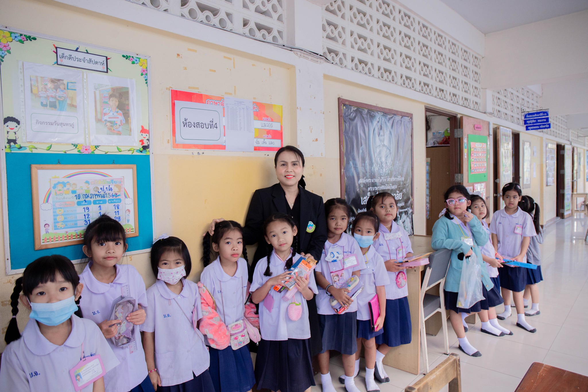นางชมัยภรณ์ เพชรเทียนชัย ผู้อำนวยการโรงเรียนบ้านจอมบึง(วาปีพร้อมประชาศึกษา) พร้อมด้วย รองผู้อำนวยการสถานศึกษา ตรวจเยี่ยมสนามสอบการประเมินความสามารถด้านการอ่านของผู้เรียน (Reading Test : RT)