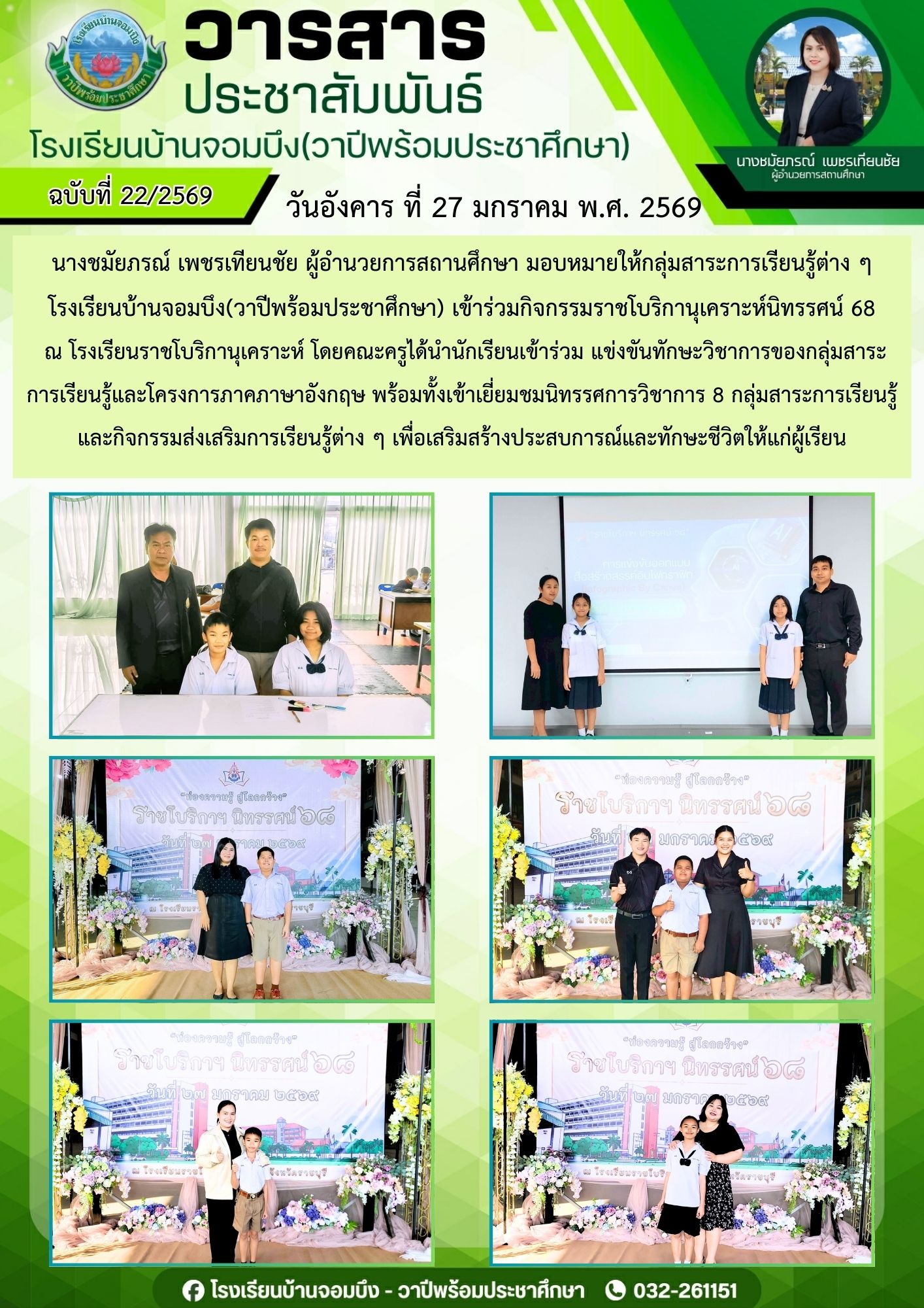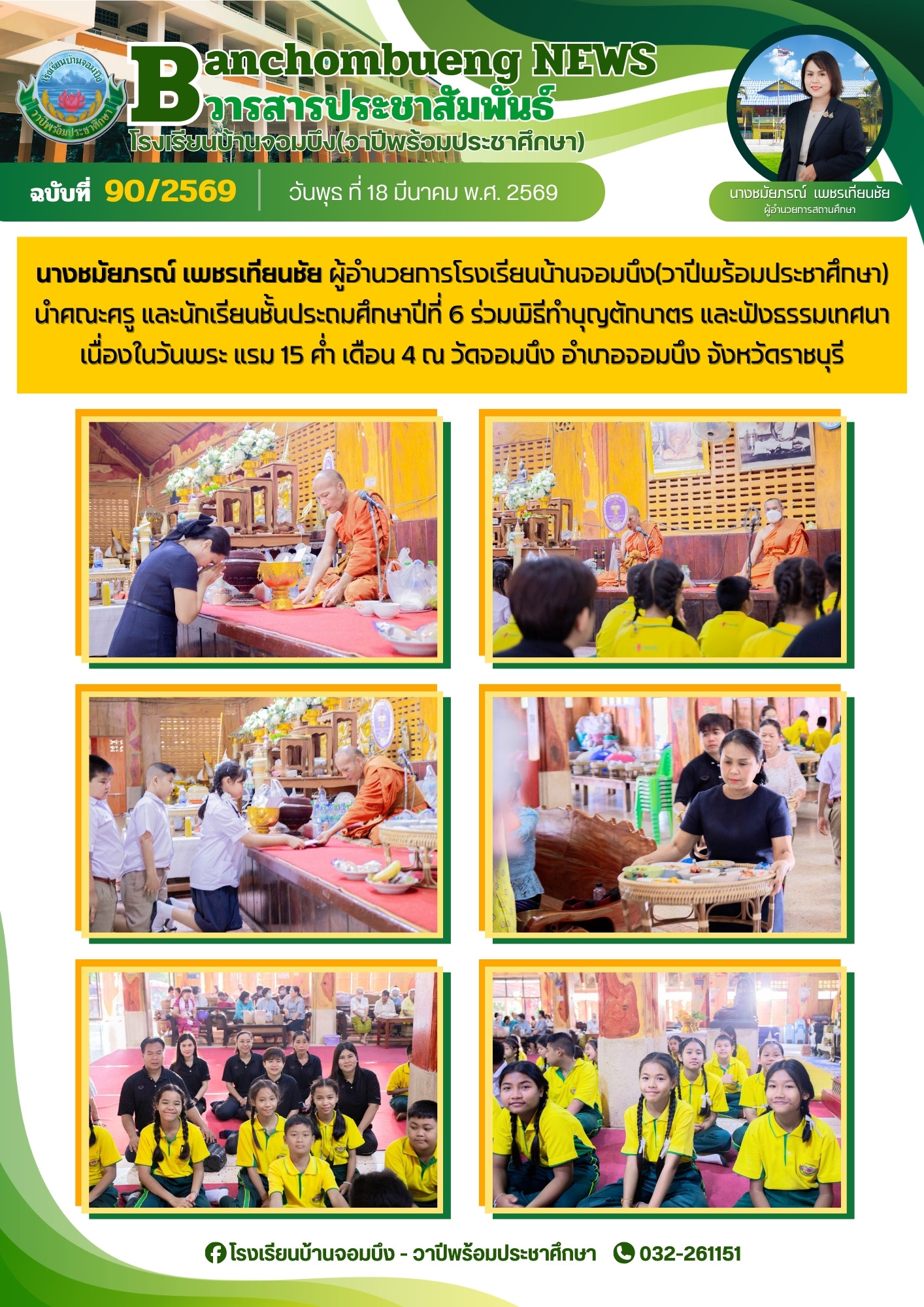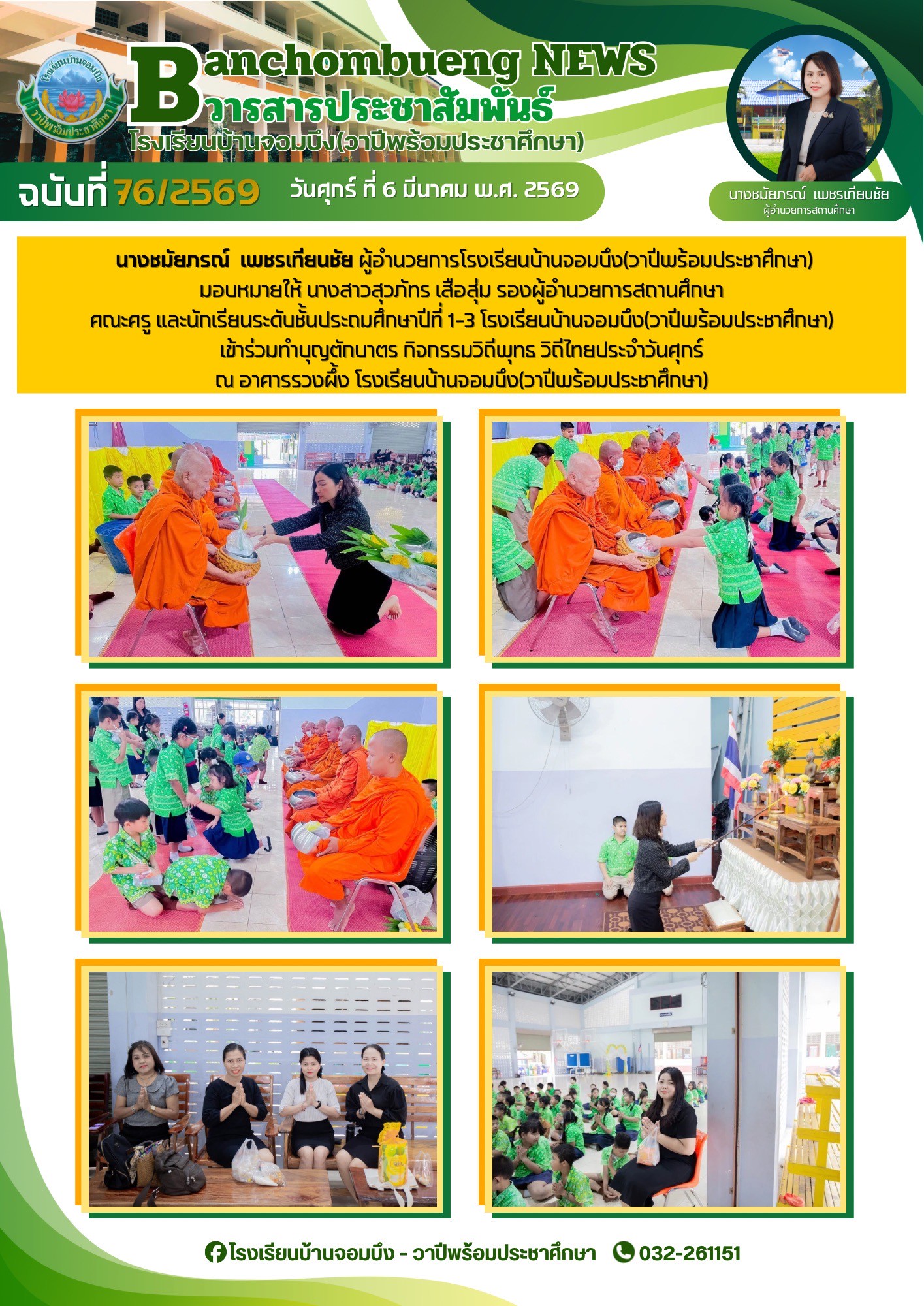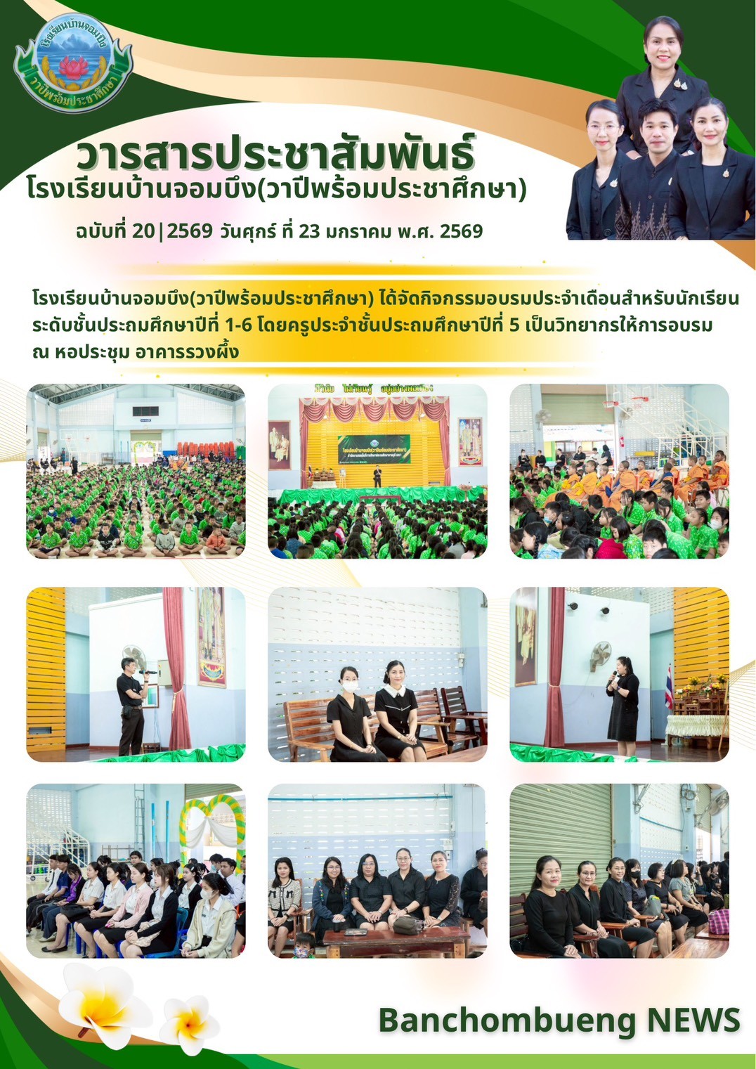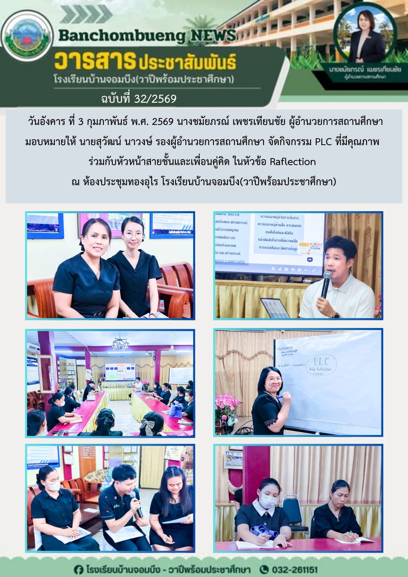 นางชมัยภรณ์ เพชรเทียนชัย ผู้อำนวยการโรงเรียนบ้านจอมบึง(วาปีพร้อมประชาศึกษา) พร้อมด้วยรองผู้อำนวยการสถานศึกษา ตรวจเยี่ยมห้องสอบและให้กำลังใจแก่คณะครูและนักเรียน ในการสอบการสอบคัดเลือก ประเภทห้องเรียนกลุ่มเป้าหมาย (ห้อง King) ระดับชั้นประถมศึกษาปีที่ 1 ปีการศึกษา 2569 โรงเรียนบ้านจอมบึง(วาปีพร้อมประชาศึกษา)
