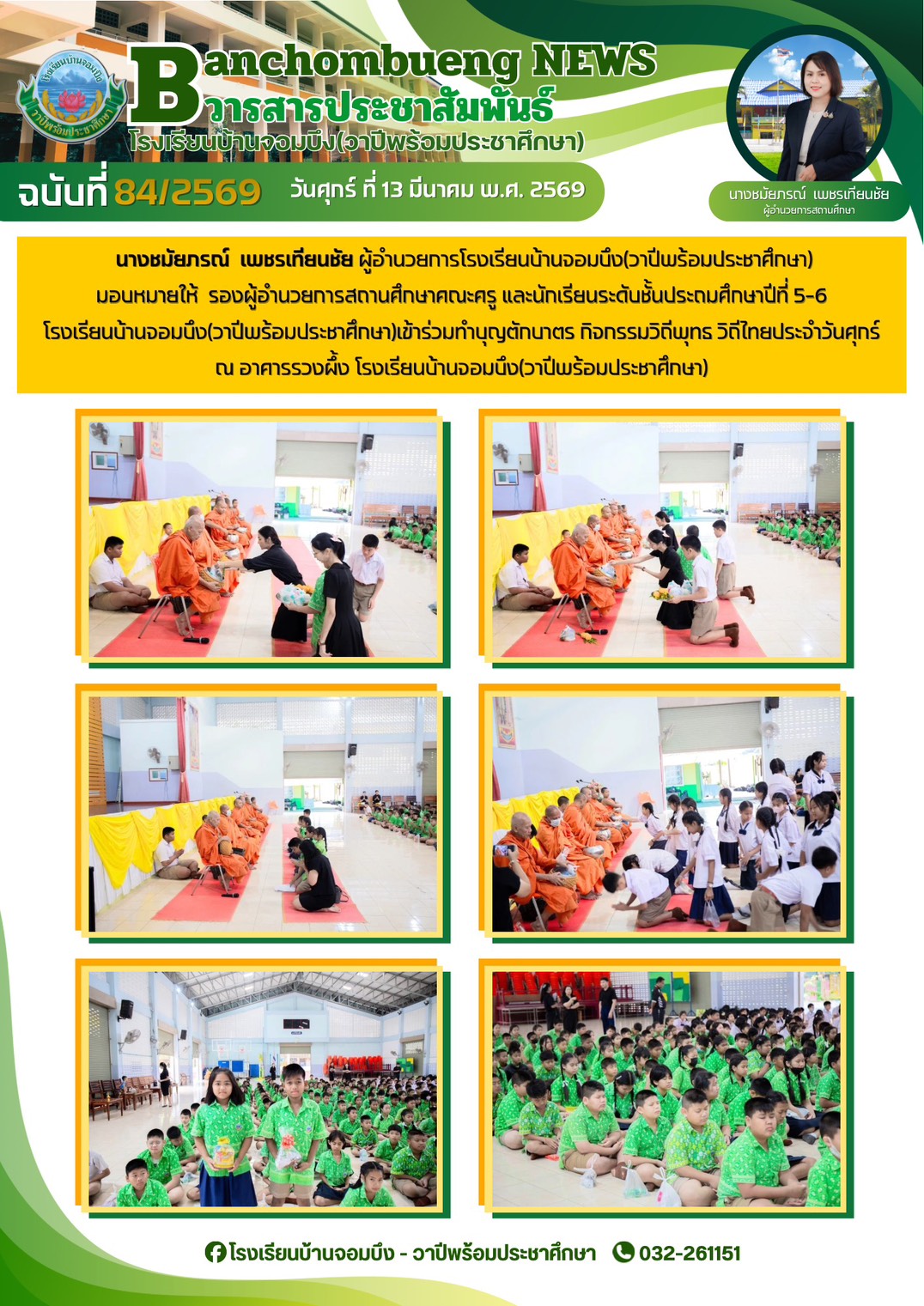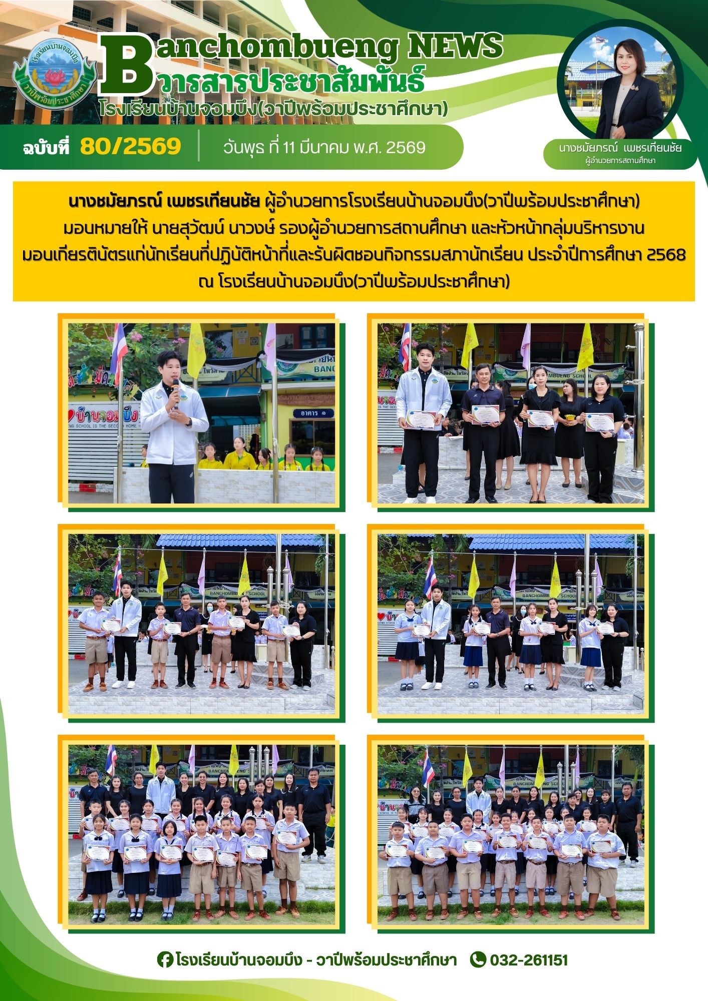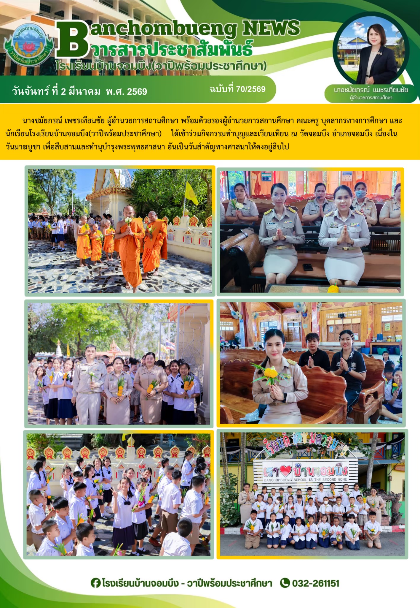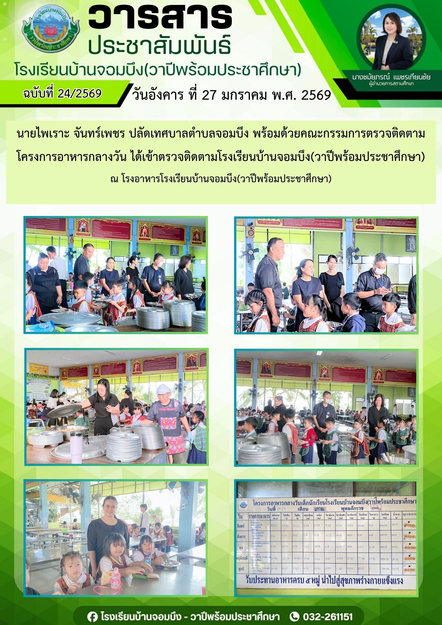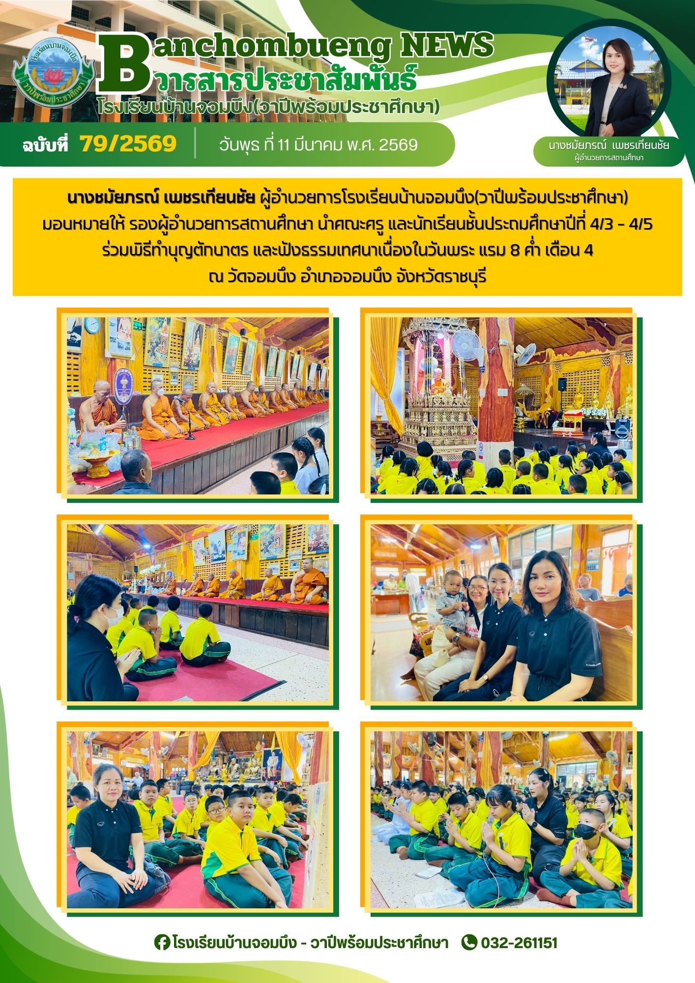 นางชมัยภรณ์ เพชรเทียนชัย ผู้อำนวยการโรงเรียนบ้านจอมบึง(วาปีพร้อมประชาศึกษา) พร้อมด้วยรองผู้อำนวยการสถานศึกษา ตรวจเยี่ยมห้องสอบและให้กำลังใจแก่คณะครูและนักเรียน ในการสอบการสอบคัดเลือก ประเภทห้องเรียนกลุ่มเป้าหมาย (ห้อง King) ระดับชั้นประถมศึกษาปีที่ 1 ปีการศึกษา 2569 โรงเรียนบ้านจอมบึง(วาปีพร้อมประชาศึกษา)