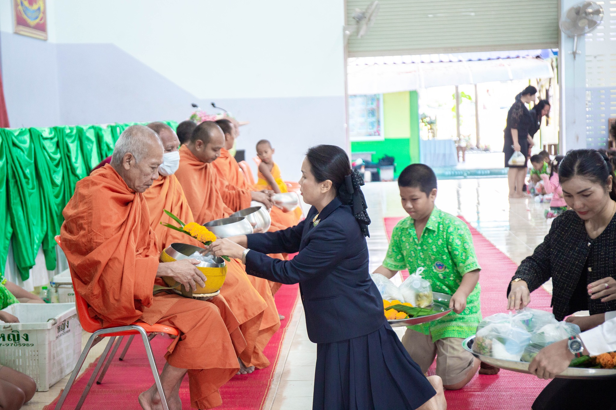 นางชมัยภรณ์ เพชรเทียนชัย ผู้อำนวยการโรงเรียนบ้านจอมบึง (วาปีพร้อมประชาศึกษา) เป็นประธานในพิธีทำบุญตักบาตร “กิจกรรมวิถีพุทธ วิถีไทย” ประจำวันศุกร์ ระดับปฐมวัย