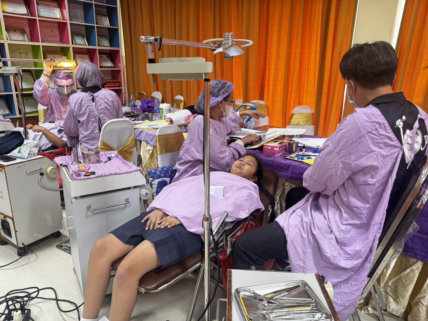 เจ้าหน้าที่โรงพยาบาลสมเด็จพระยุพราชจอมบึง ตรวจฟัน อุดฟัน และเคลือบหลุมร่องฟันระดับชั้นประถมศึกษาปีที่ 4 โรงเรียนบ้านจอมบึง(วาปีพร้อมประชาศึกษา)