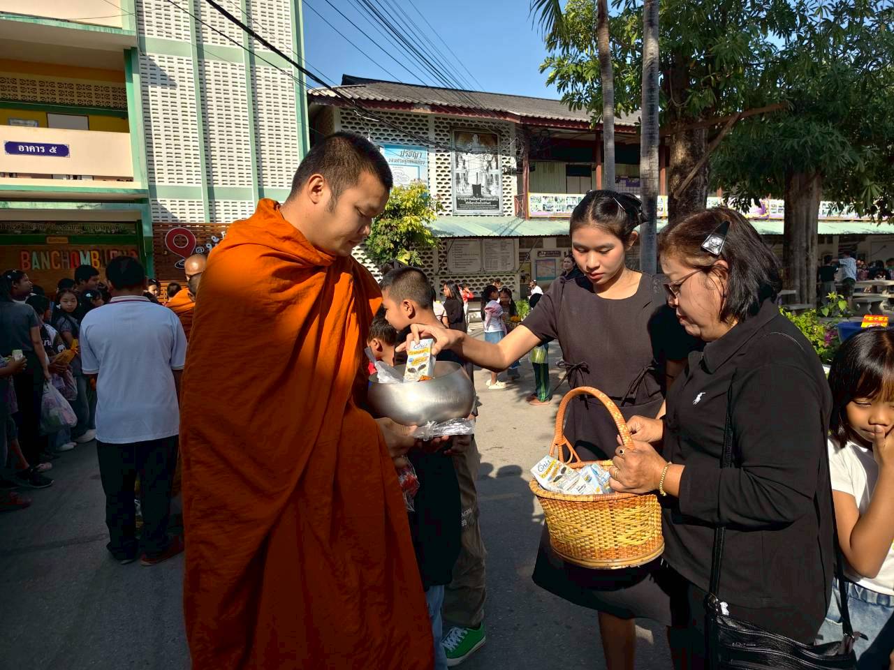 ทำบุญตักบาตรข้าวสารอาหารแห้งแด่พระภิกษุสงฆ์ 9 รูป และกิจกรรมปีใหม่ในชั้นเรียน ณ โรงเรียนบ้านจอมบึง(วาปีพร้อมประชาศึกษา)
