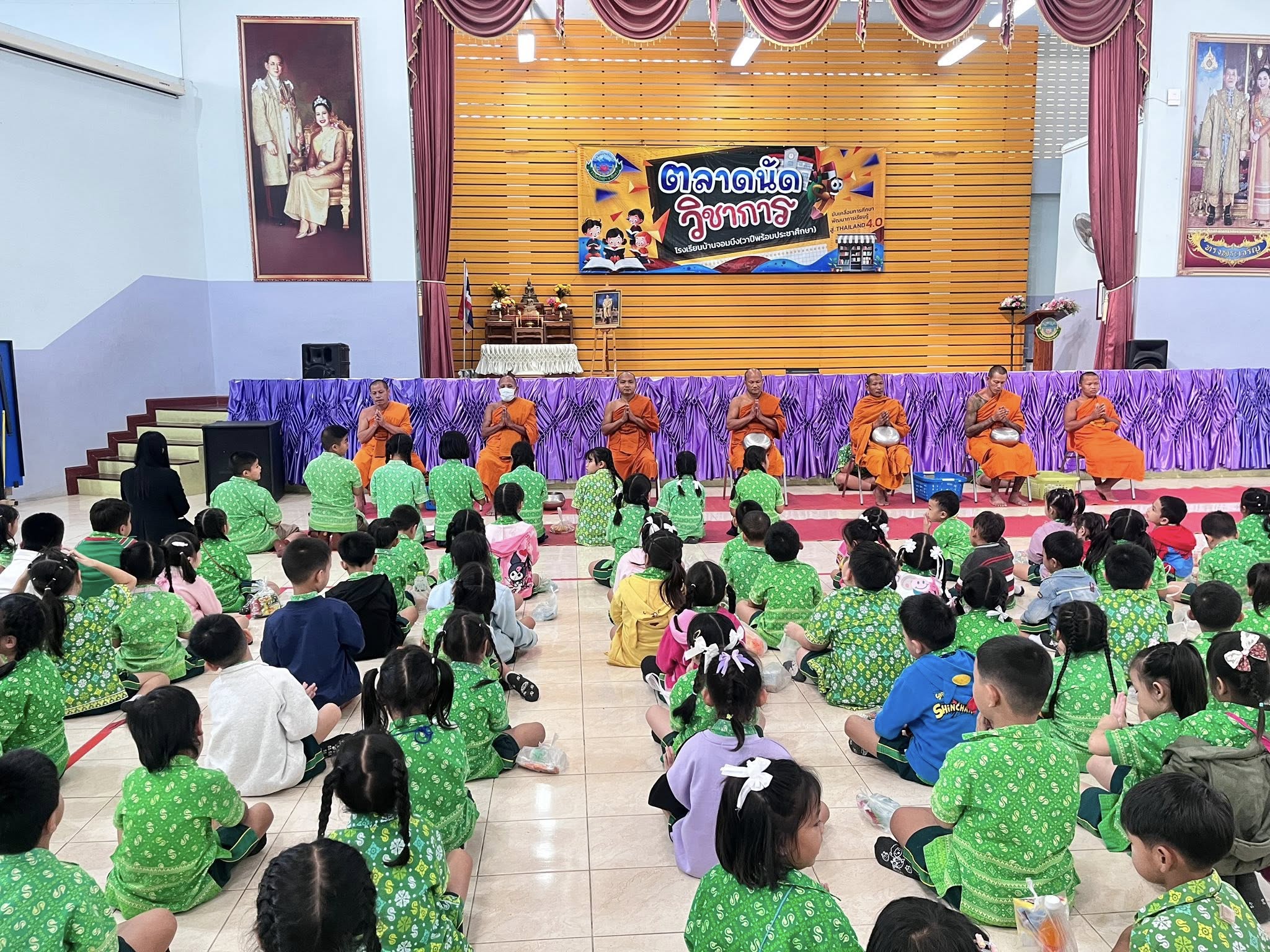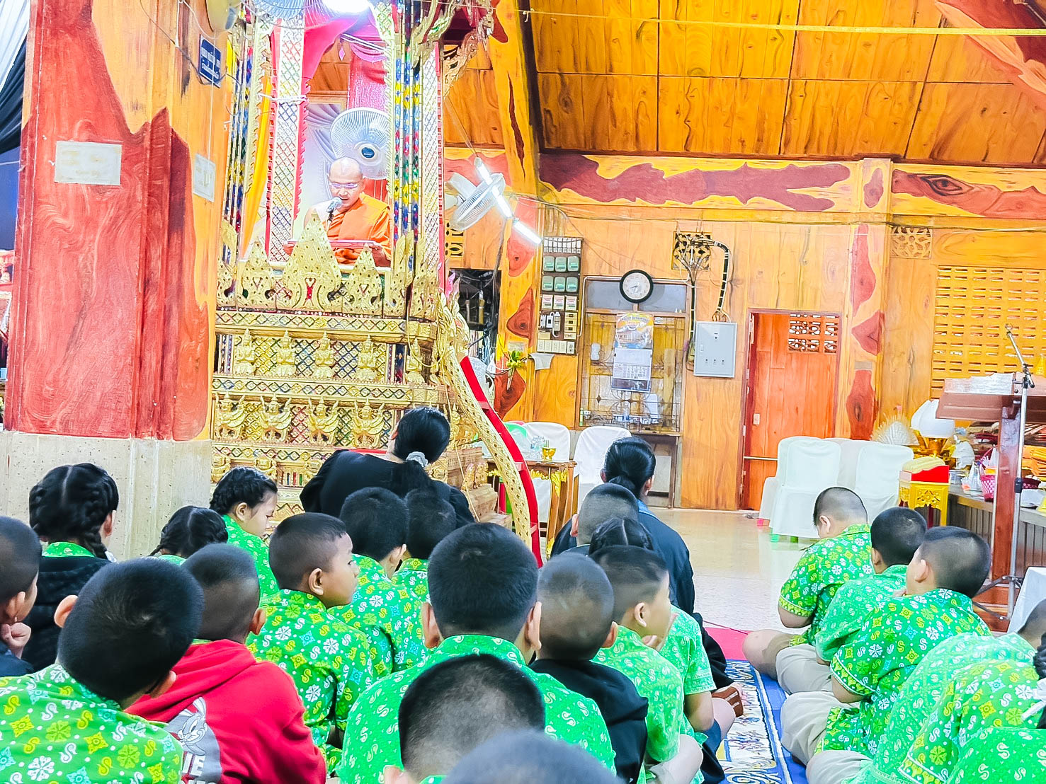 กิจกรรมทำบุญตักบาตรนักเรียนระดับชั้นประถมศึกษาปีที่ 4/1-4/2 เนื่องในวันพระ ณ วัดจอมบึง อำเภอจอมบึง จังหวัดราชบุรี