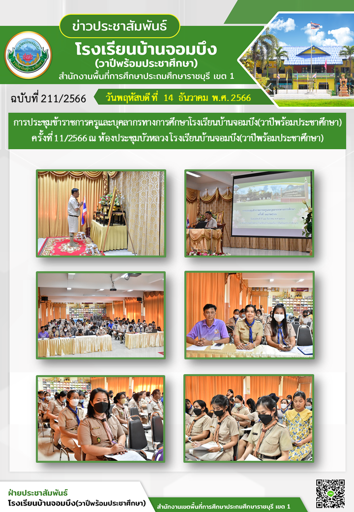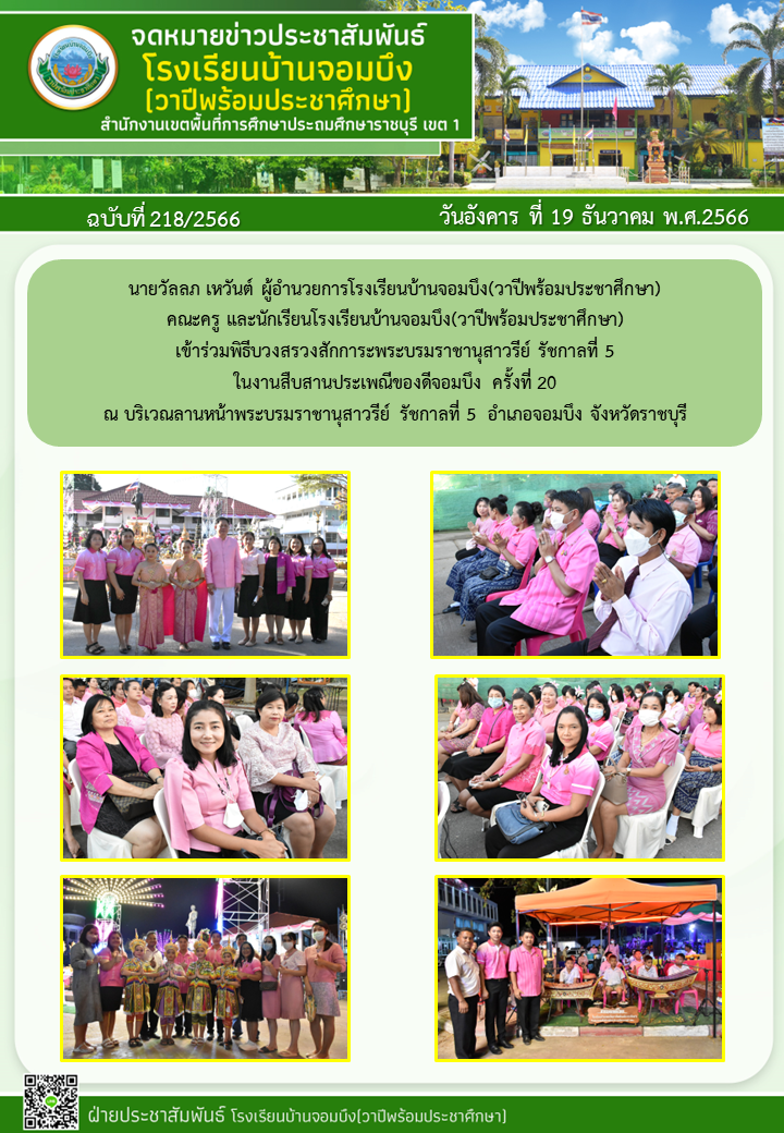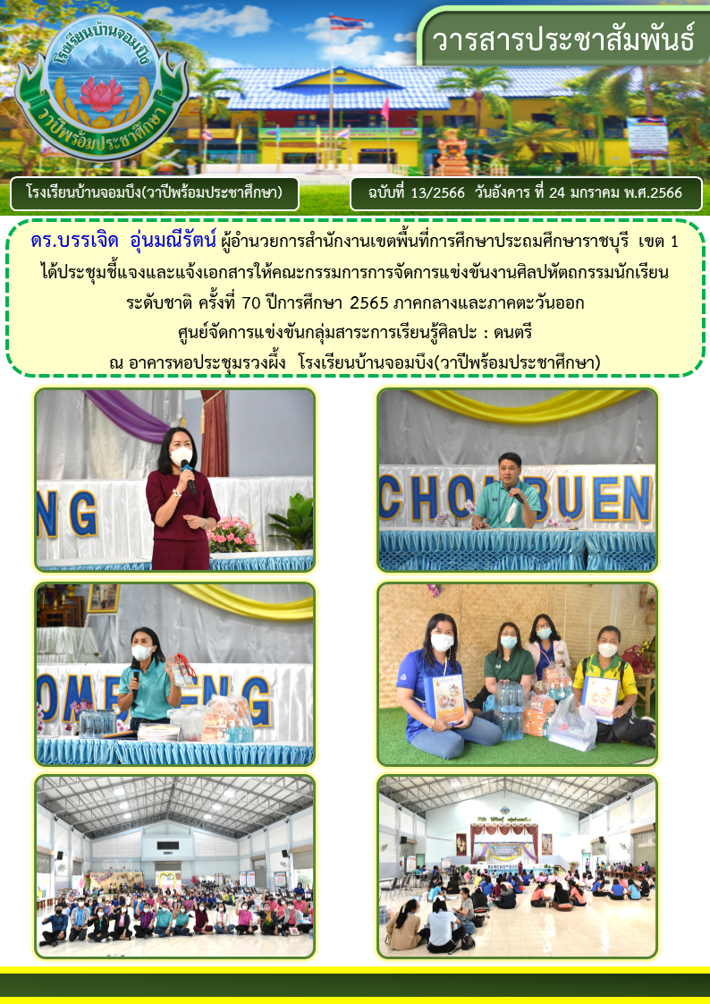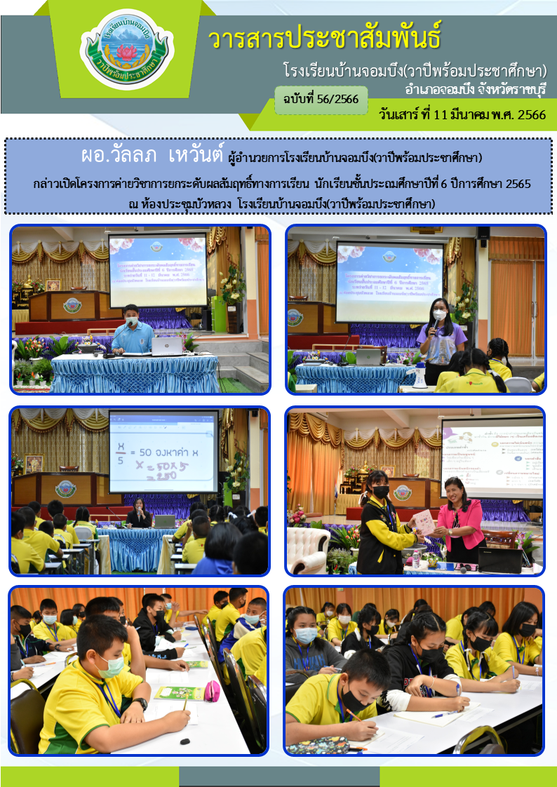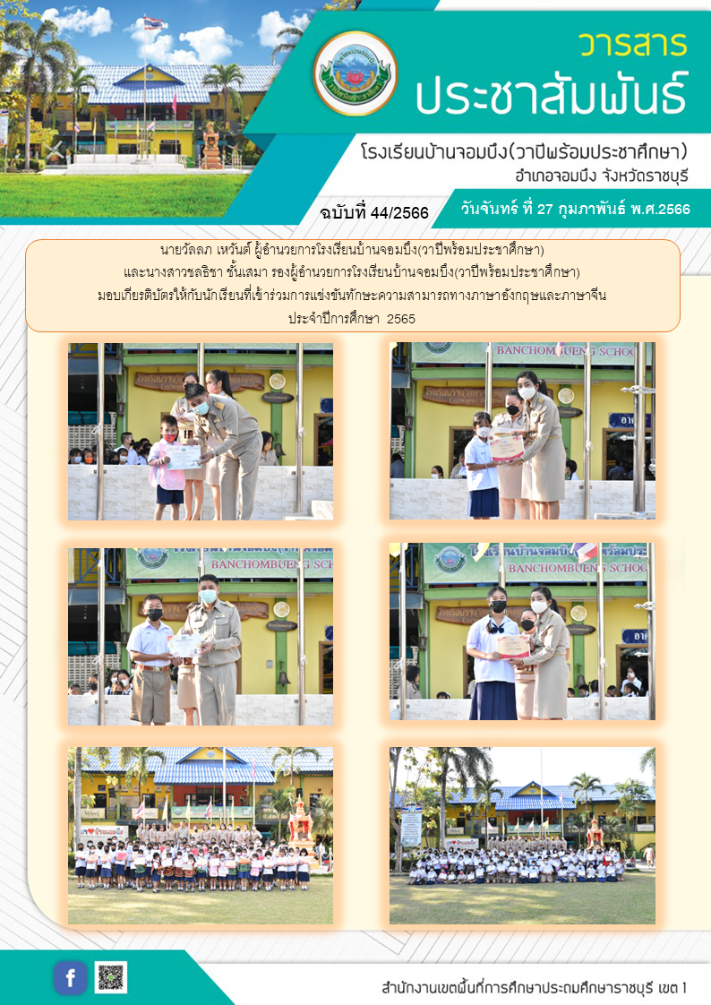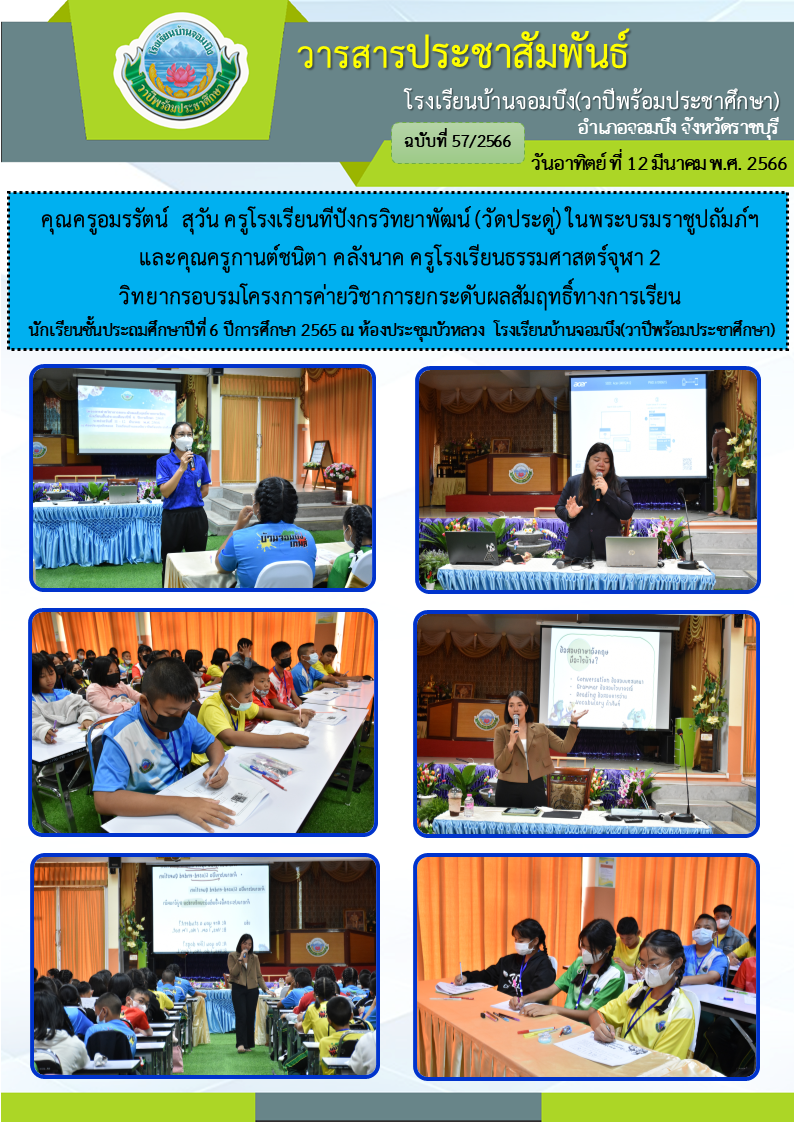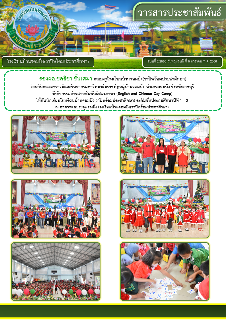 คณะครูโรงเรียนบ้านจอมบึง(วาปีพร้อมประชาศึกษา) ร่วมกับคณะอาจารย์และวิทยากรมหาวิทยาลัยราชภัฏหมู่บ้านจอมบึง อำเภอจอมบึง จังหวัดราชบุรี จัดกิจกรรมค่ายสานสัมพันธ์สองภาษา(English and Chinese Day Camp) ให้กับนักเรียนโรงเรียนบ้านจอมบึง(วาปีพร้อมประชาศึกษา) ระดับชั้นประถมศึกษาปีที่ 1 - 3 ณ อาคารหอประชุมรวงผึ้ง โรงเรียนบ้านจอมบึง(วาปีพร้อมประชาศึกษา) วันพฤหัสบดี ที่ 5 มกราคม พ.ศ. 2566
