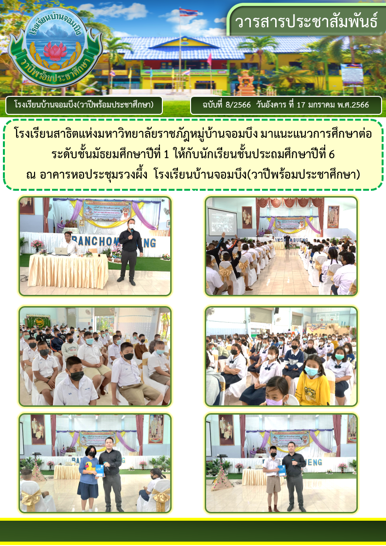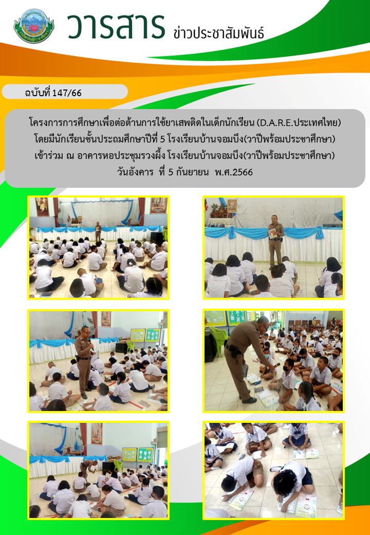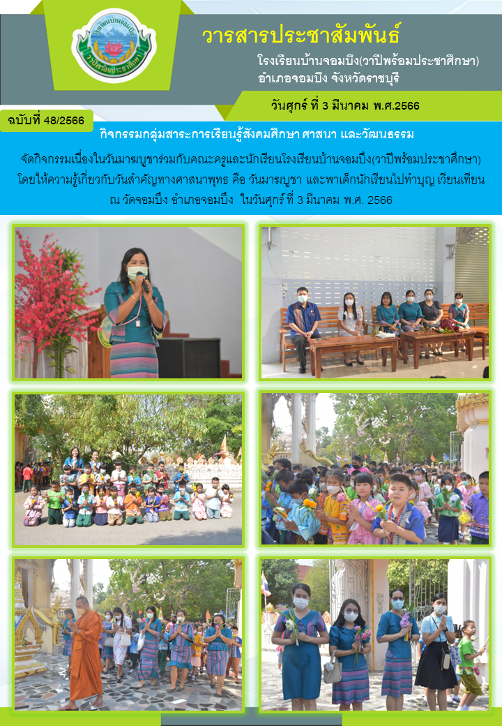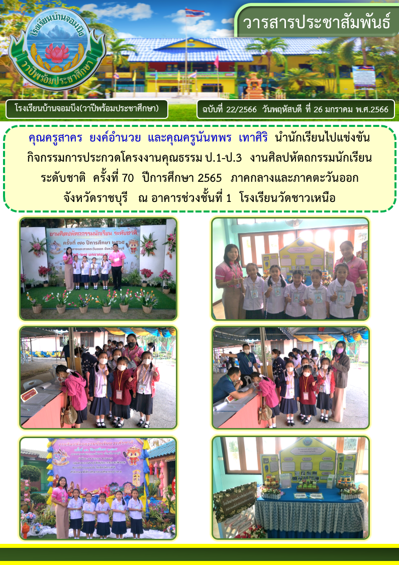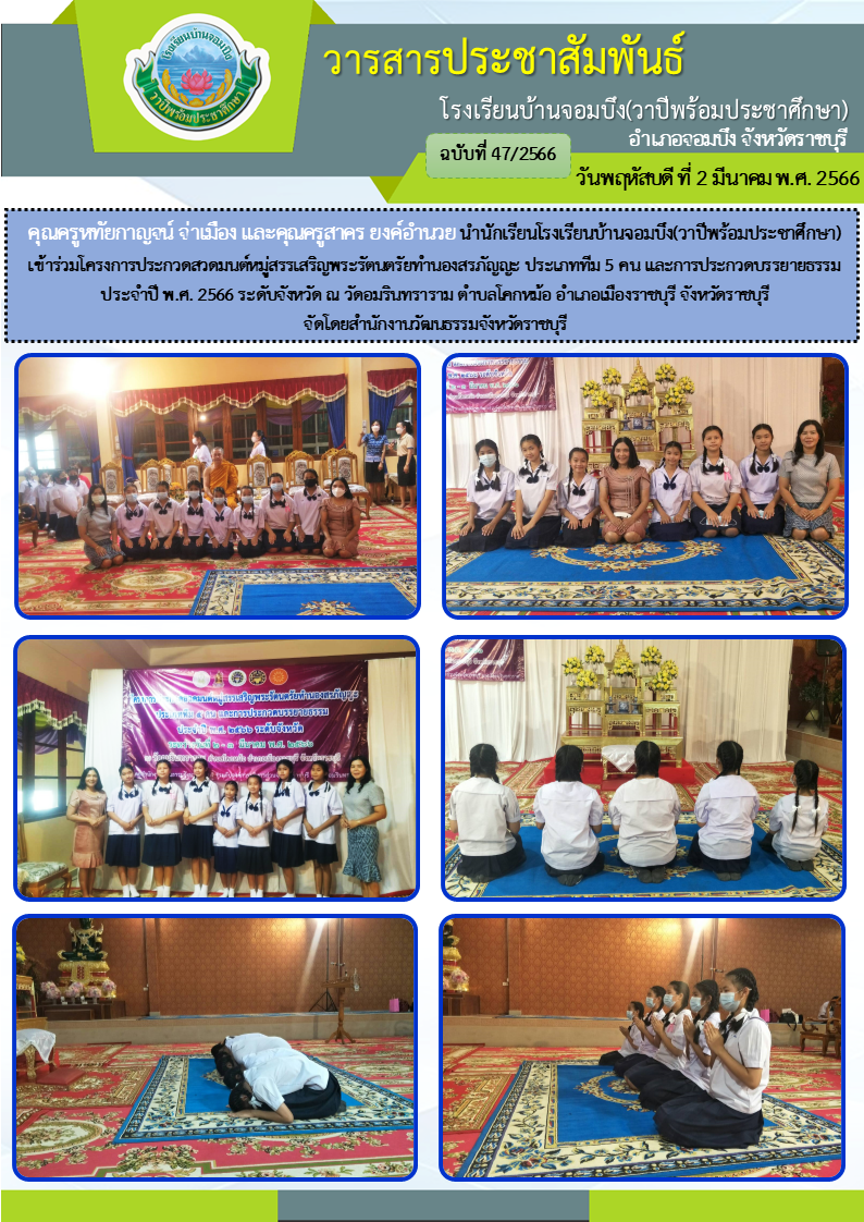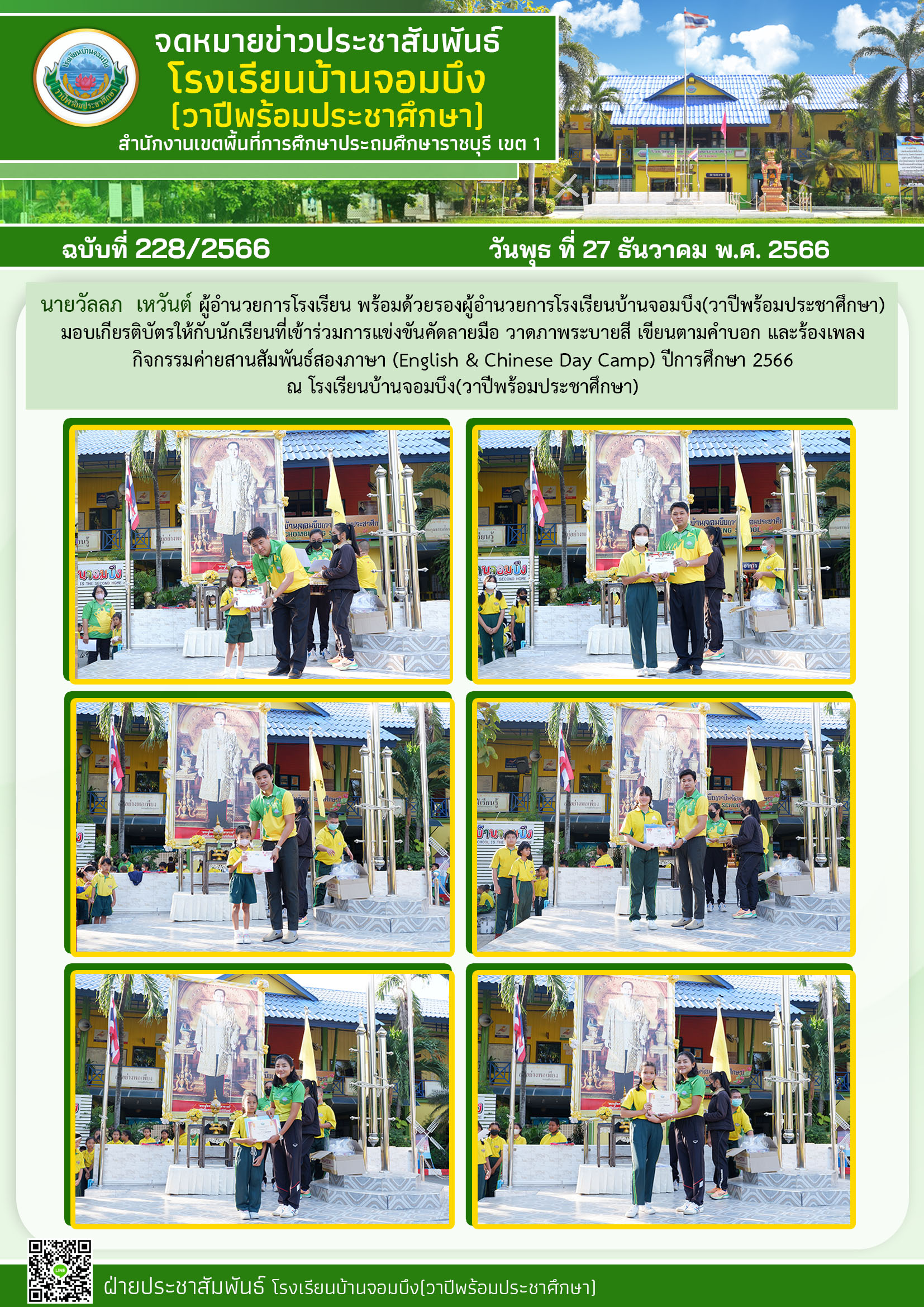คณะครูโรงเรียนบ้านจอมบึง(วาปีพร้อมประชาศึกษา) ร่วมกับคณะอาจารย์และวิทยากรมหาวิทยาลัยราชภัฏหมู่บ้านจอมบึง อำเภอจอมบึง จังหวัดราชบุรี จัดกิจกรรมค่ายสานสัมพันธ์สองภาษา(English and Chinese Day Camp) ให้กับนักเรียนโรงเรียนบ้านจอมบึง(วาปีพร้อมประชาศึกษา) ระดับชั้นประถมศึกษาปีที่ 1 - 3 ณ อาคารหอประชุมรวงผึ้ง โรงเรียนบ้านจอมบึง(วาปีพร้อมประชาศึกษา) วันพฤหัสบดี ที่ 5 มกราคม พ.ศ. 2566