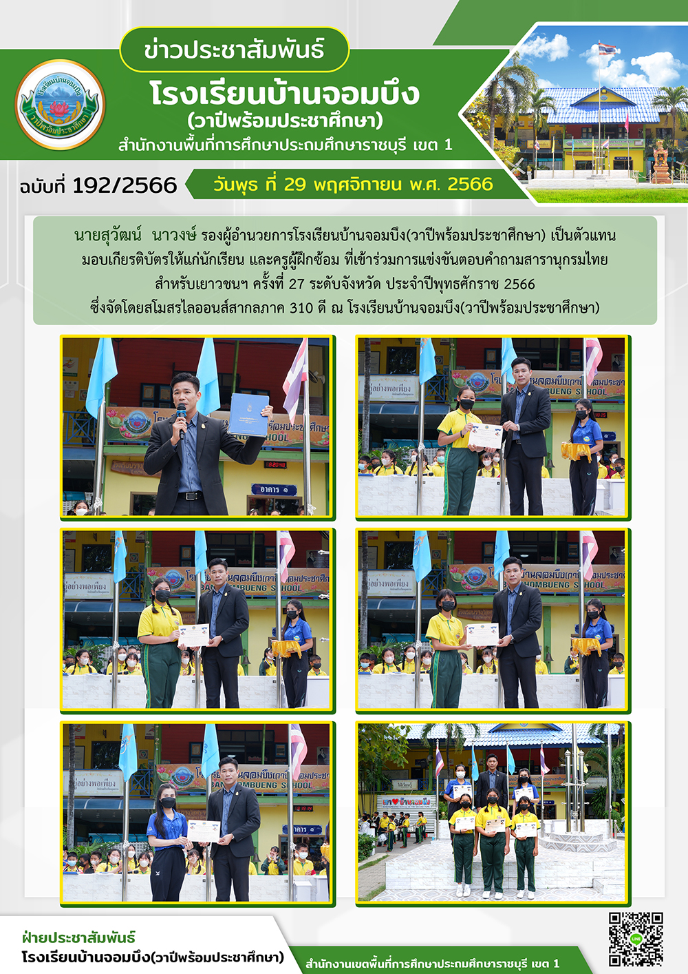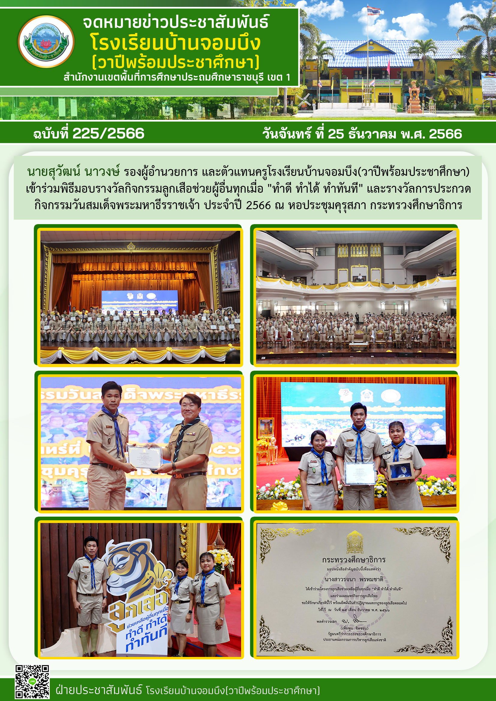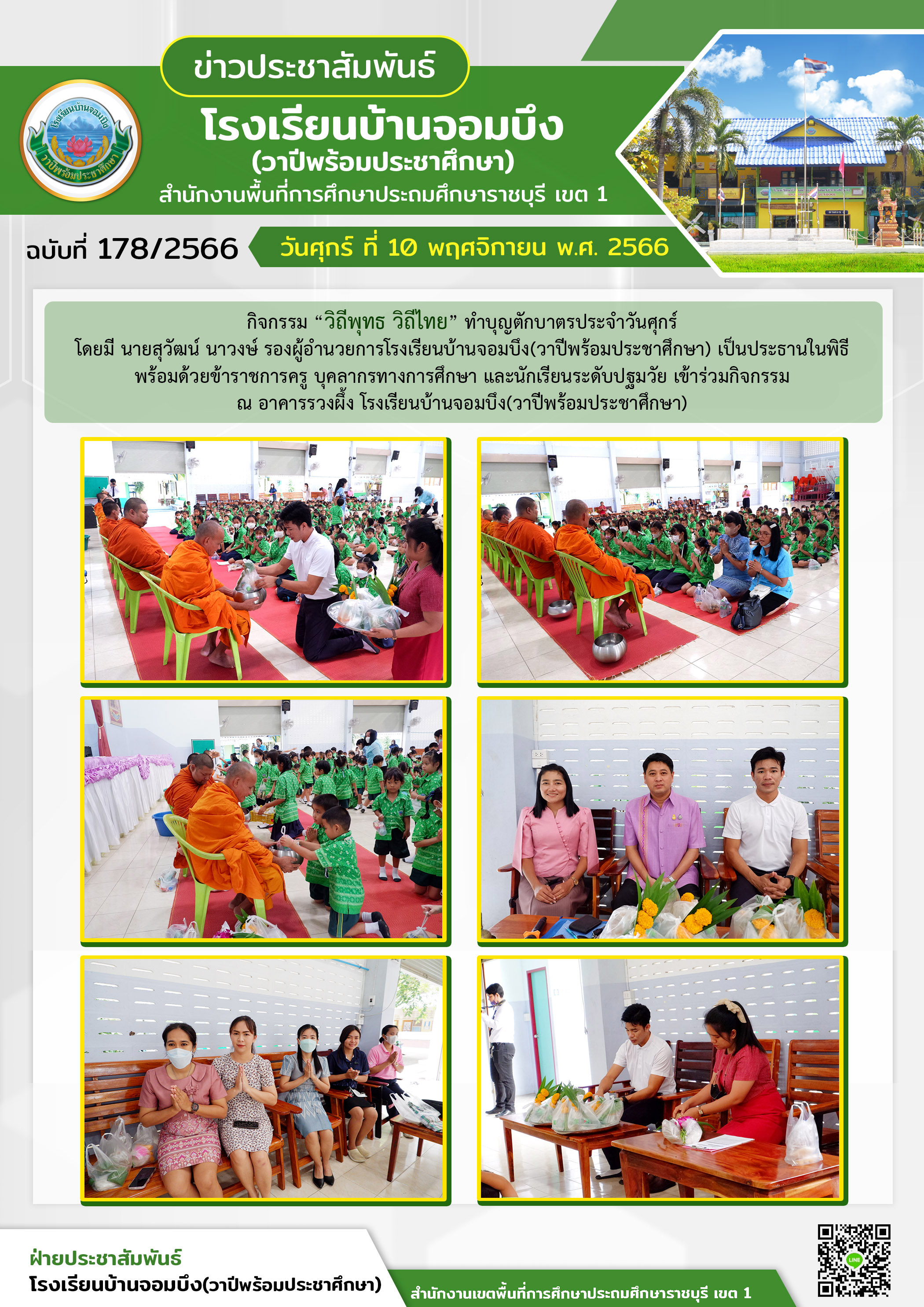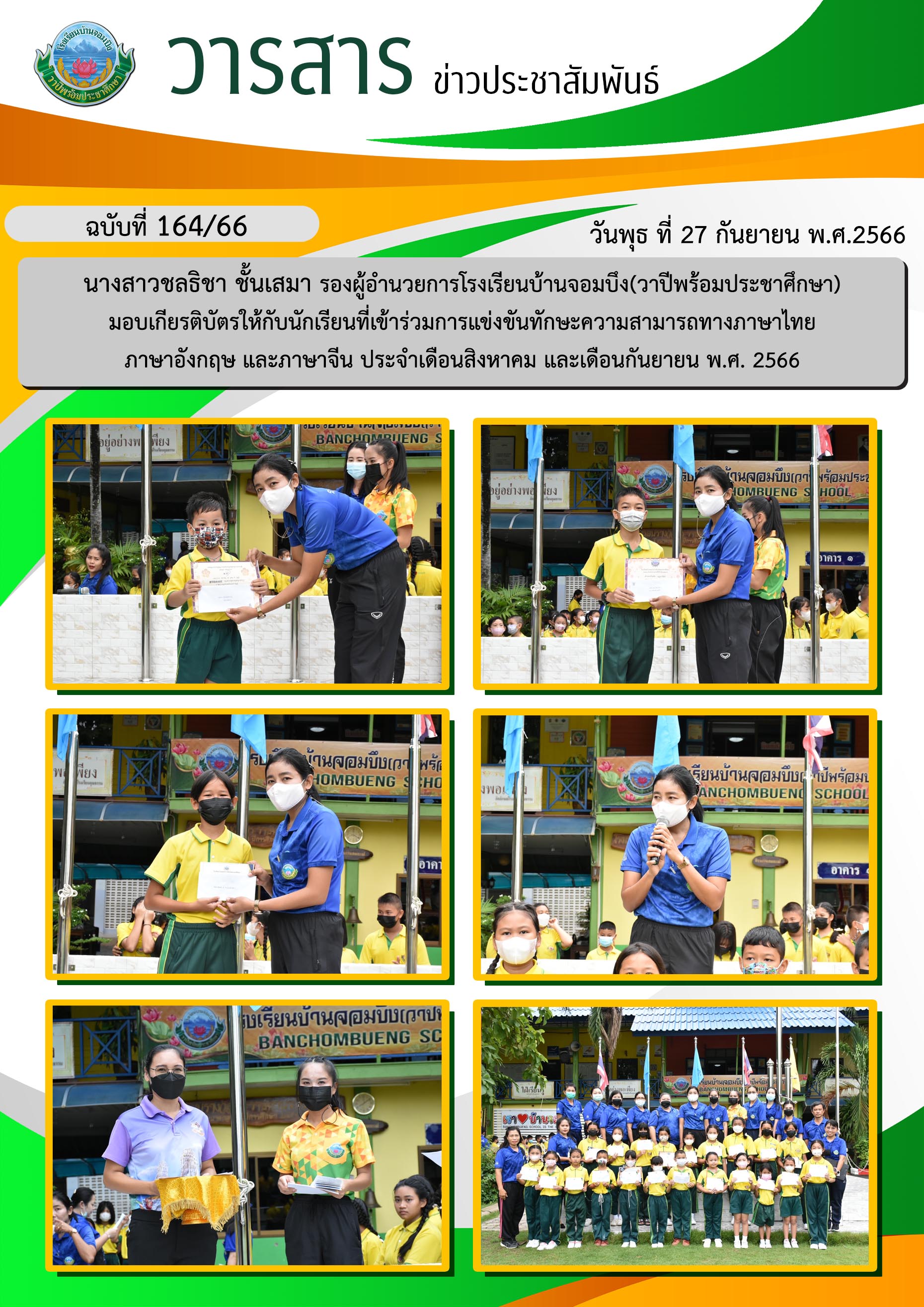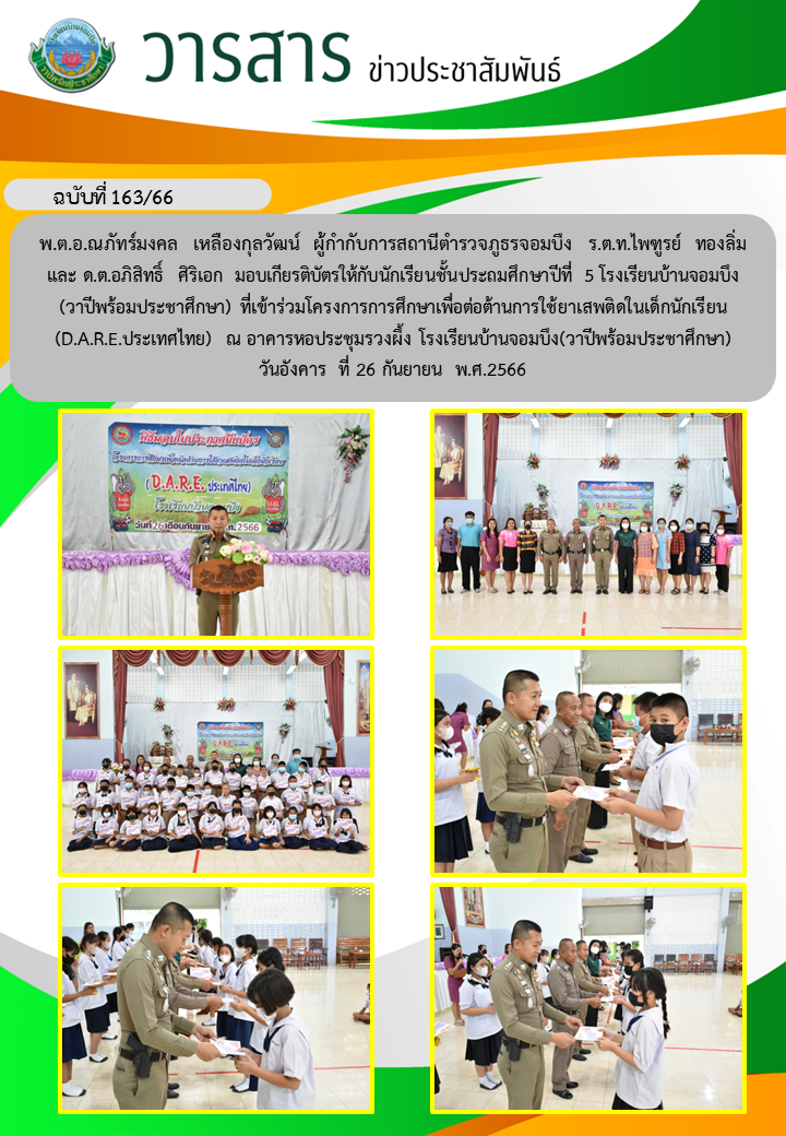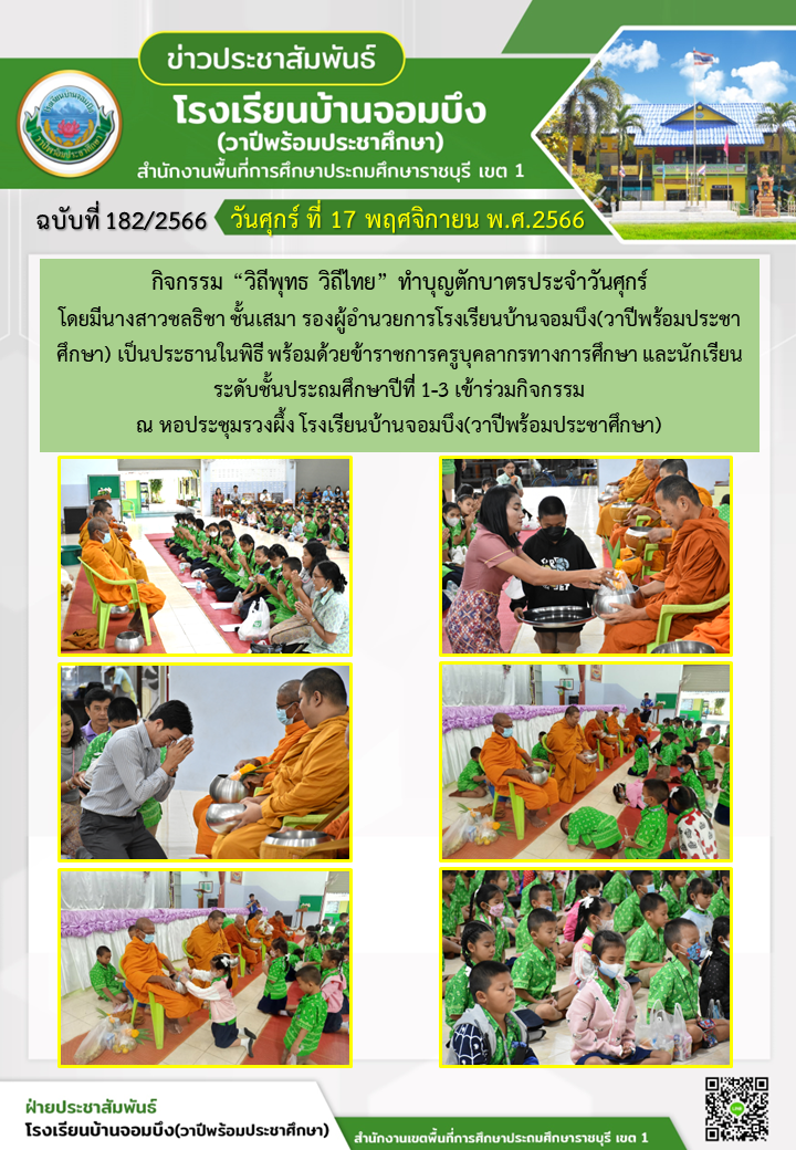 คณะครูโรงเรียนบ้านจอมบึง(วาปีพร้อมประชาศึกษา) ร่วมกับคณะอาจารย์และวิทยากรมหาวิทยาลัยราชภัฏหมู่บ้านจอมบึง อำเภอจอมบึง จังหวัดราชบุรี จัดกิจกรรมค่ายสานสัมพันธ์สองภาษา(English and Chinese Day Camp) ให้กับนักเรียนโรงเรียนบ้านจอมบึง(วาปีพร้อมประชาศึกษา) ระดับชั้นประถมศึกษาปีที่ 1 - 3 ณ อาคารหอประชุมรวงผึ้ง โรงเรียนบ้านจอมบึง(วาปีพร้อมประชาศึกษา) วันพฤหัสบดี ที่ 5 มกราคม พ.ศ. 2566