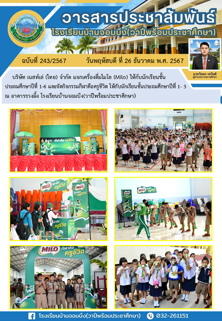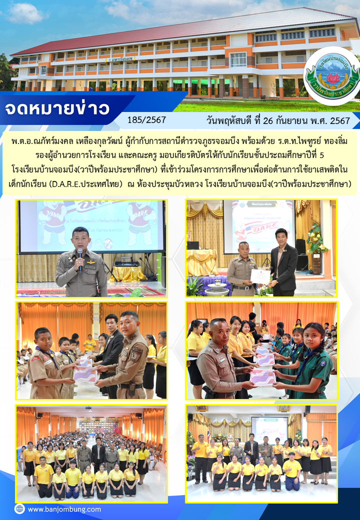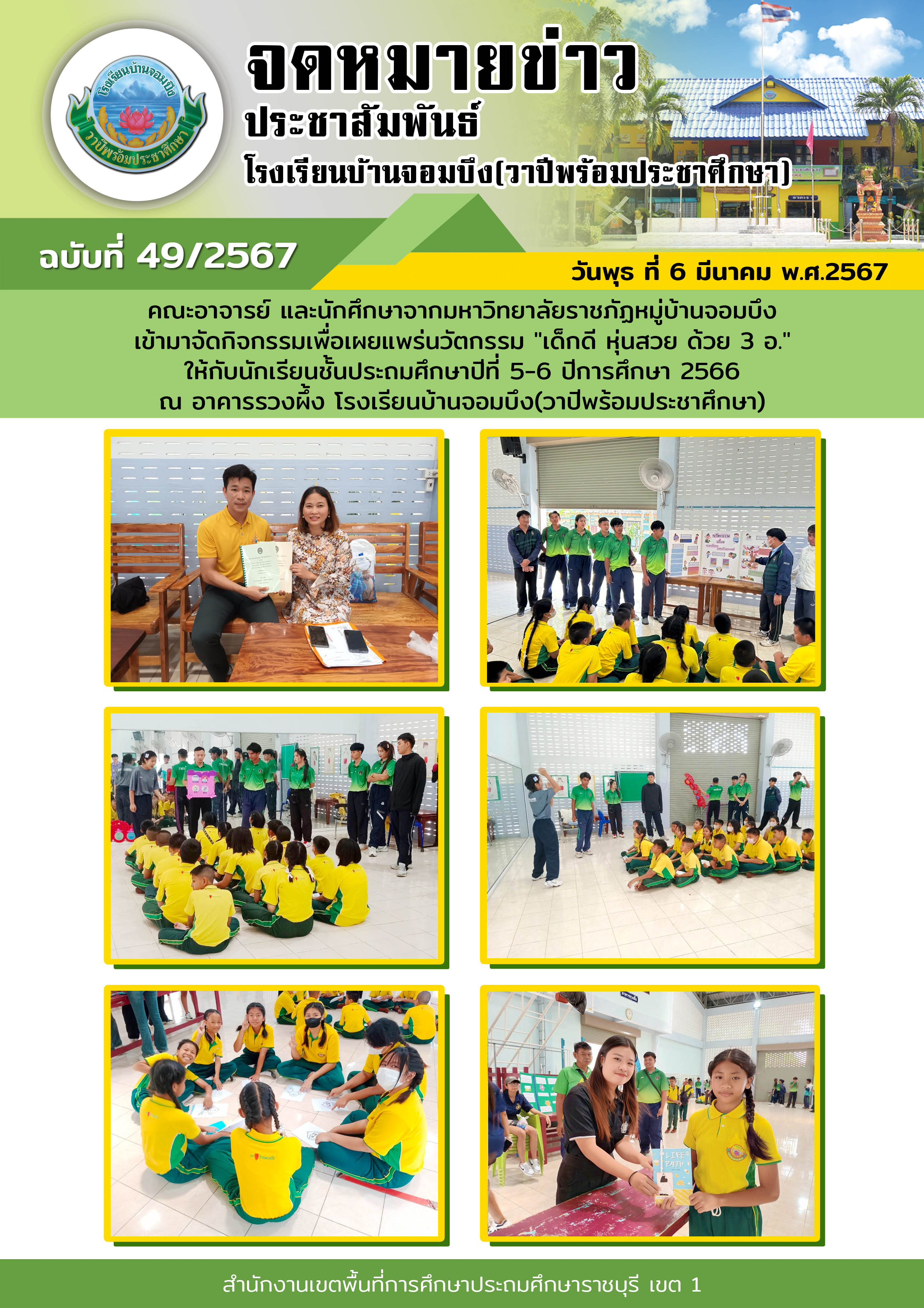 โครงการสันทนาการให้ความรู้เพื่อส่งเสริมการใช้สื่อออนไลน์อย่างฉลาดและปลอดภัยให้กับนักเรียน เรียน ท่านผู้อำนวยการและคณะคุณครูโรงเรียนบ้านจอมบึง(วาปีพร้อมประชาศึกษา) เนื่องด้วยบริษัท เยเนอรัล แคร์ โปรดักส์ จำกัด ผู้ผลิตและจำหน่ายสินค้าขนมฟรุตกัมมี่ ตรา ฟริท-ซี พลัส ผสมแคลเซียมและวิตามินซีสูงได้จัดกิจกรรม SAVE SMART SOCIAL ใช้โซเชียลอย่างฉลาดและปลอดภัย ปีที่2 ให้กับนักเรียนซึ่งทางโครงการได้ริเริ่มจัดกิจกรรมสันทนาการให้ความรู้กับเด็กๆ ในลักษณะสัญจรไปทั่วประเทศกว่า 1,000 โรงเรียน